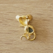 ネズミを模ったゴールドのボディ。おなかにはエメラルドグリーンの大きなパワーストーン。レッドラインストーンのひとつ目の面白いデザイン。細かい細工で描かれた毛並みやヒゲ、くるりと巻いたしっぽやちょこんと立った足などなんとも愛くるしいデザインのブローチです。