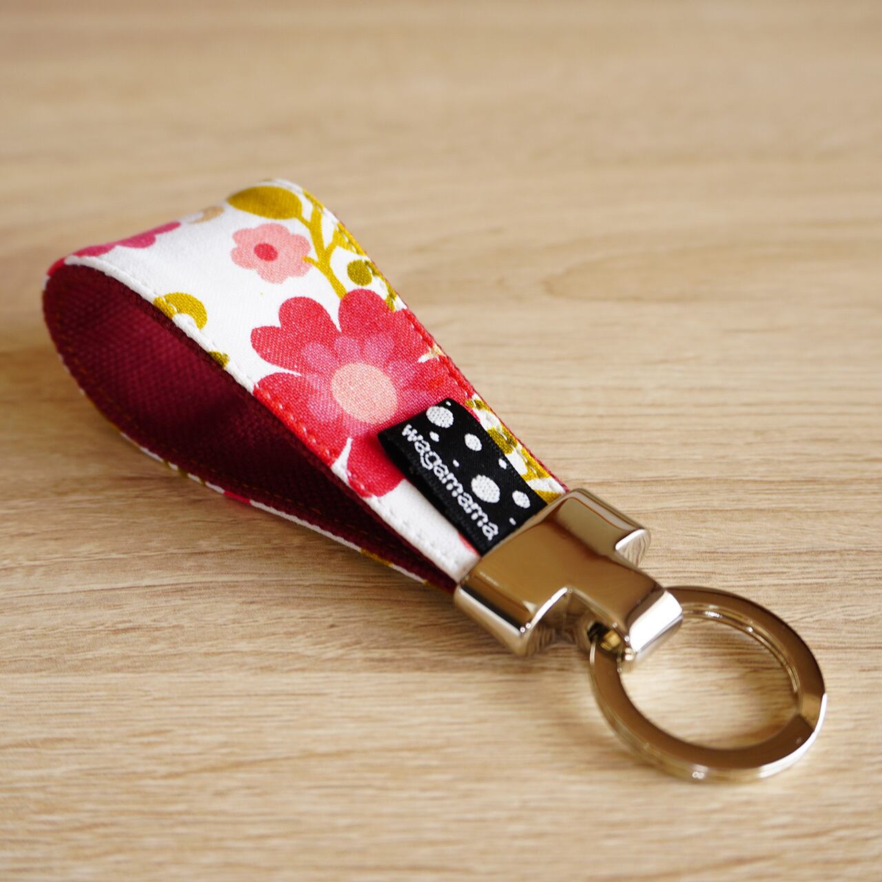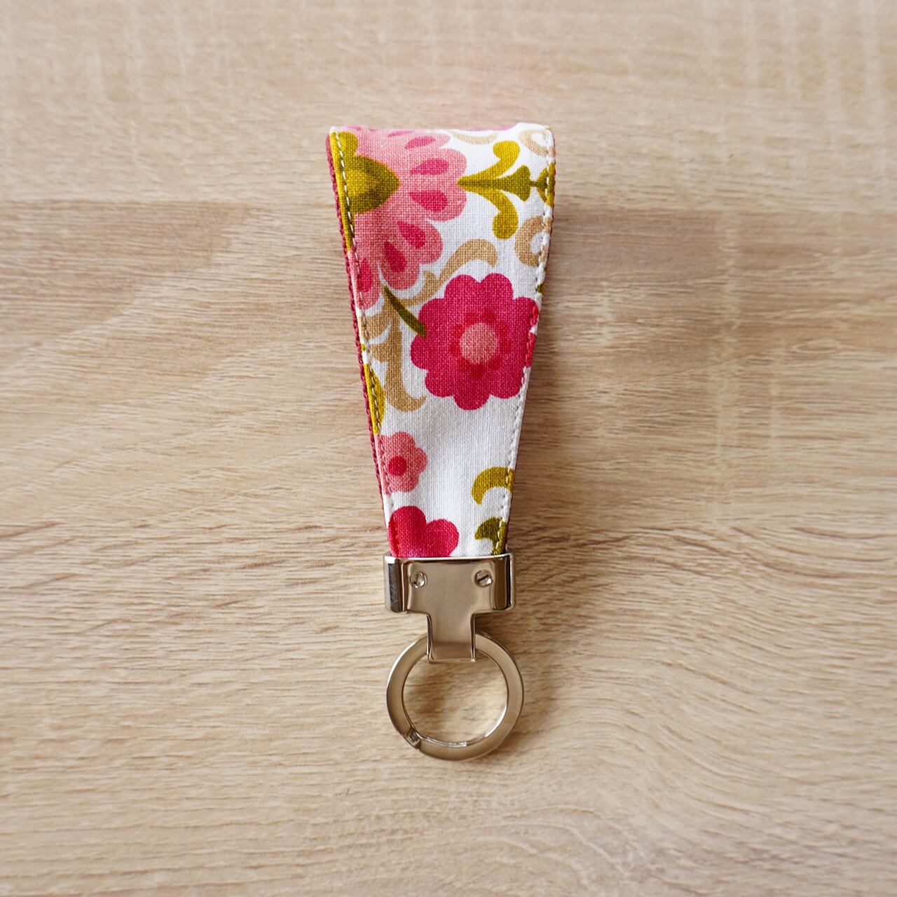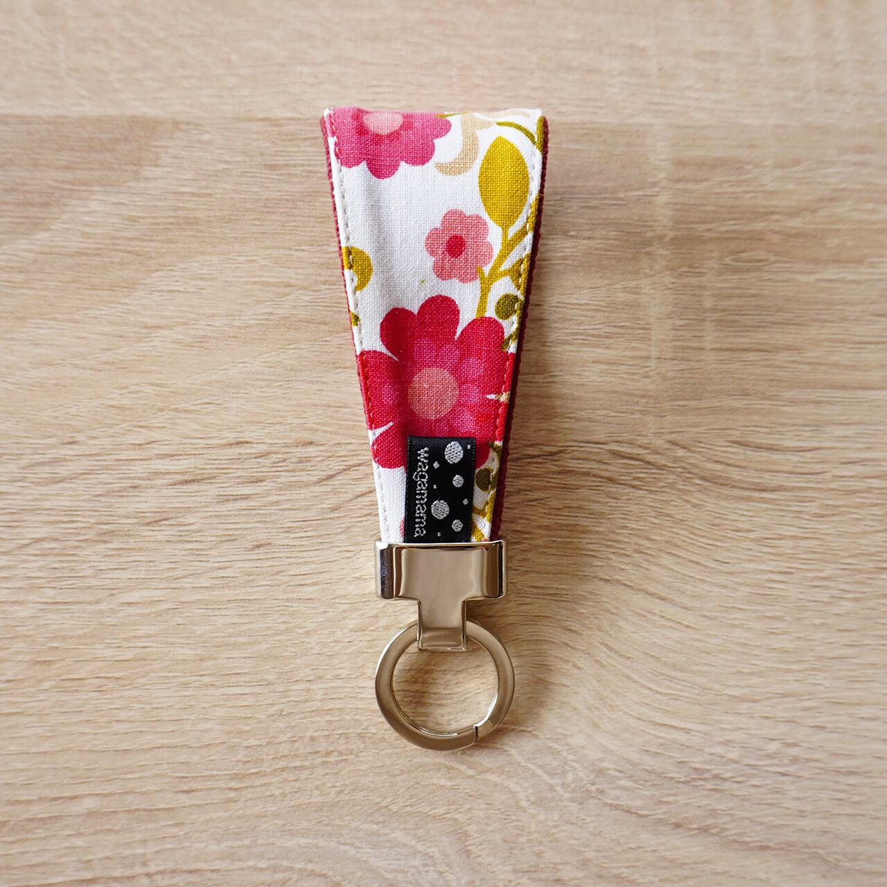 ヴィンテージファブリックで作ったキーリング。カラフルで可愛いキーリングで、お部屋や車のキーも持ち歩くのが楽しくなります。